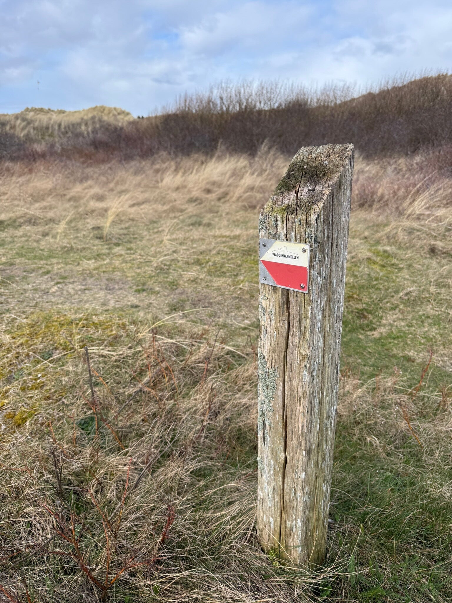 De routes staan gemarkeerd met geel-rode bordjes met “WaddenWandelen” erop. Op sommige plekken is de markering helaas minimaal. Ik raad je aan om de GPX-bestanden te downloaden en deze te importeren in een navigatie-app (bijvoorbeeld Komoot). Zeker voor de stukken waar je op het strand loopt, is dit bijna noodzakelijk om te weten waar je het strand weer af moet.